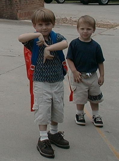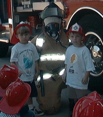 Rod and Lex with a fireman during a field trip the the fire department. |