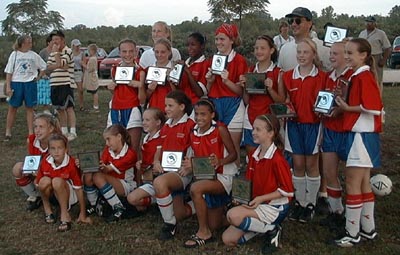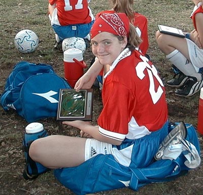 Ana admiring her plaque, after a grueling weekend and a heartbreaking 2-1 championship loss (one in which she stopped a PK to keep the team in the game). Ana and her team played awsome that weekend! |