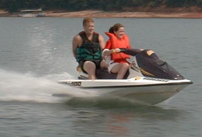 Ana got to drive a jet ski at the company picnic(notice she's in her soccer uniform). |