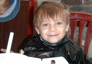 The Lexman! Isn't he cute. He was glad to get into Arby's out of the cold! Too much soccer for him this week. |