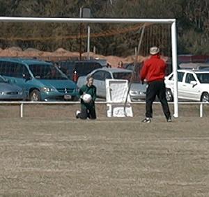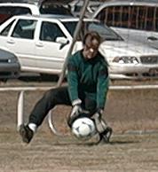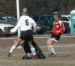 This was one of Ana's many great saves. This was also a very close call, as you can see she almost got kicked in the face. Of course the lame ref. didn't say a thing to the kid. |