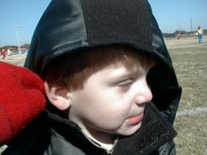 On a cold night during one of Ana's games, Rod decided to wear his seat instead of sitting on it. |