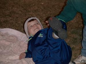 Lex rolling around in the grass, playing with one of the other little siblings. He was having a lot of fun here in his new warm up outfit. |