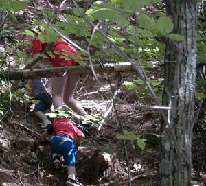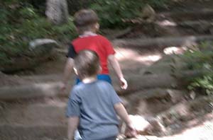 Rod and Lex look forward to our family hiking trips on the weekends. They are climbing up the falls at a local state park here. |