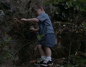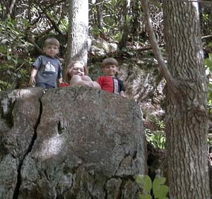 Ana was helping Lex climb up to a huge rock and Rod was right on their heels. |