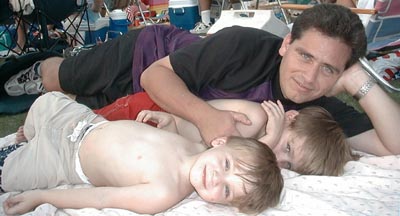 The boys had a good time playing with dad. Marty couldn't just relax, because the boys would attack him. |